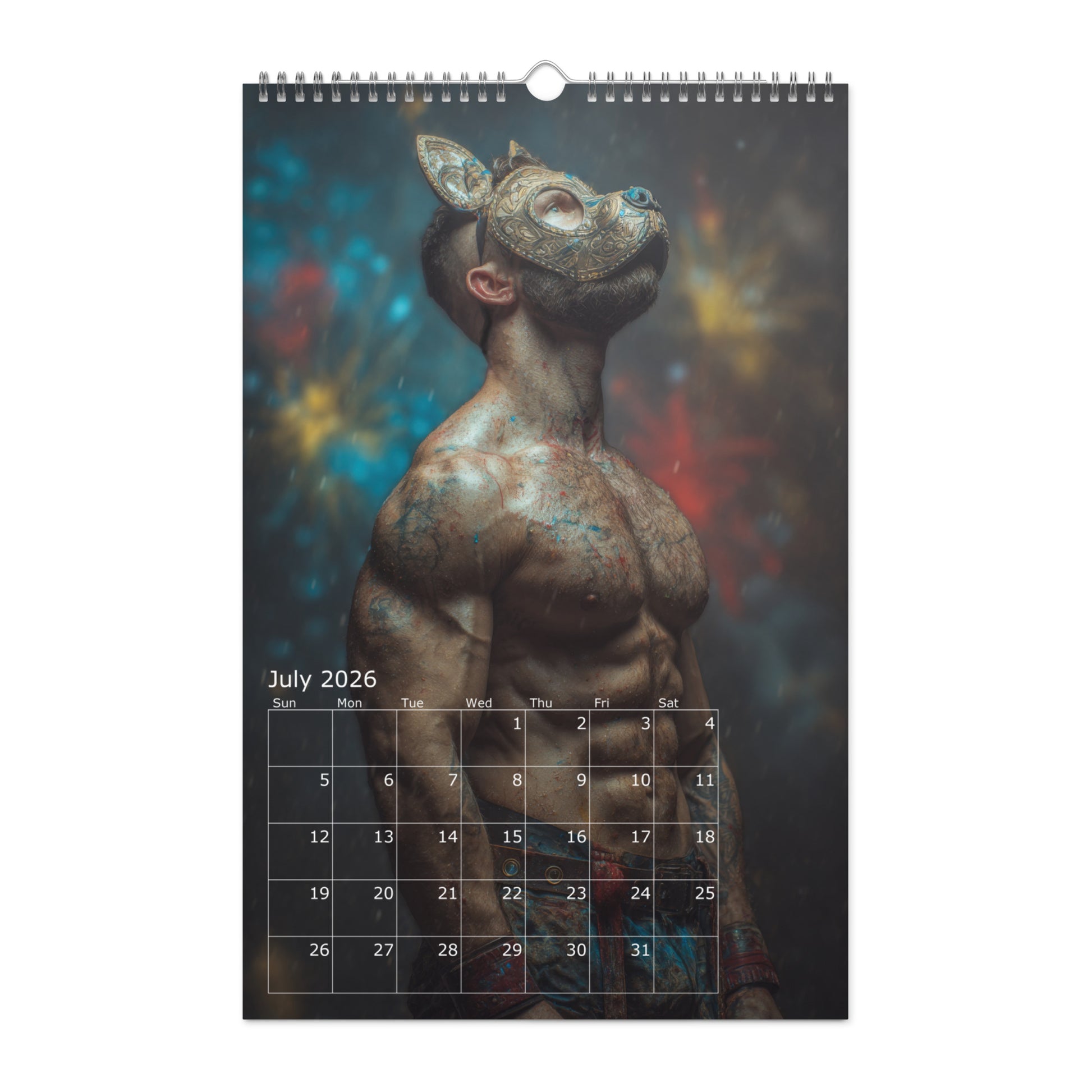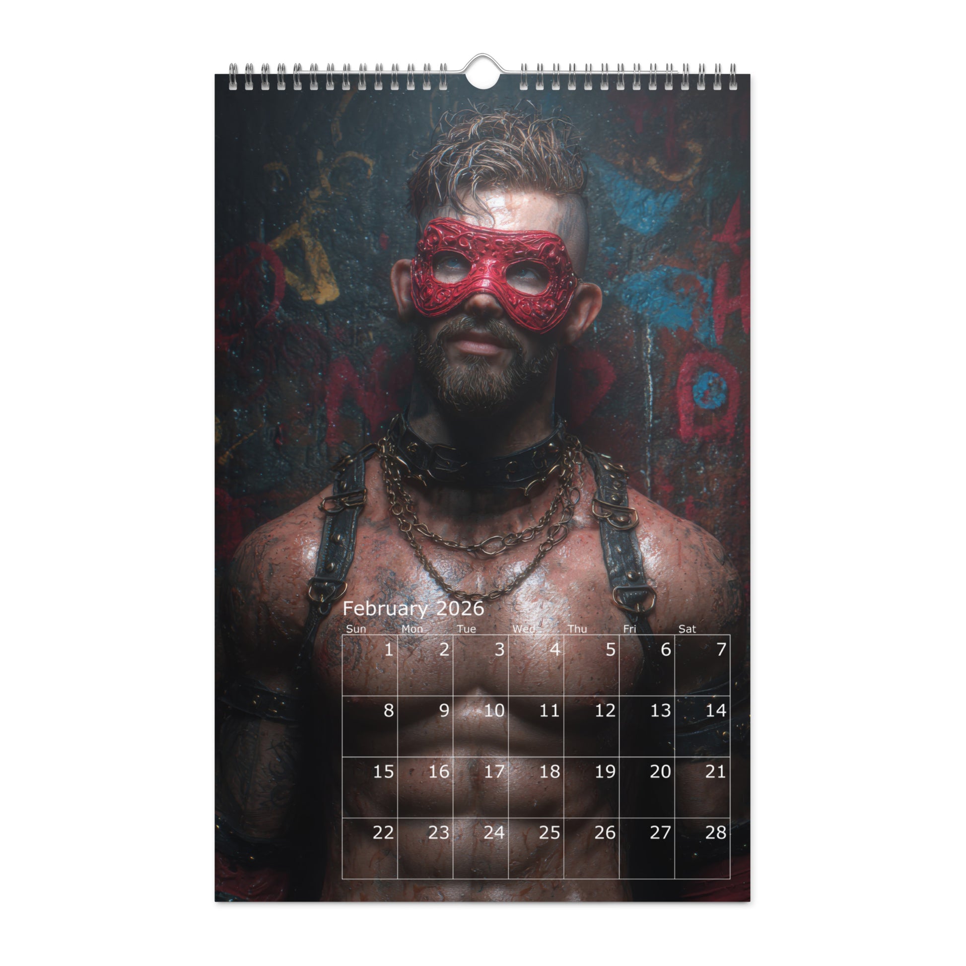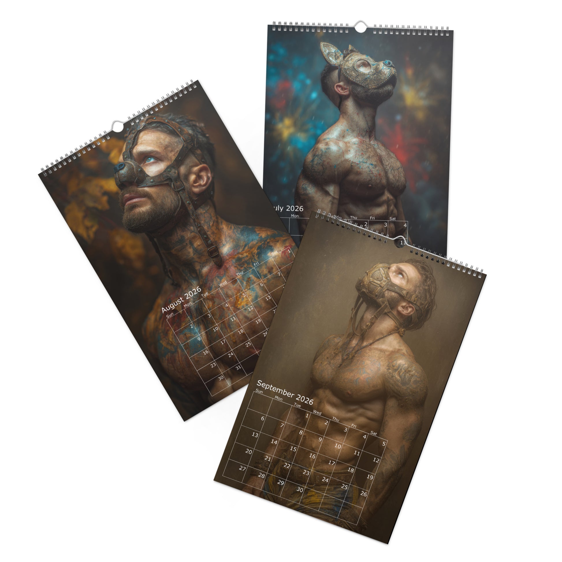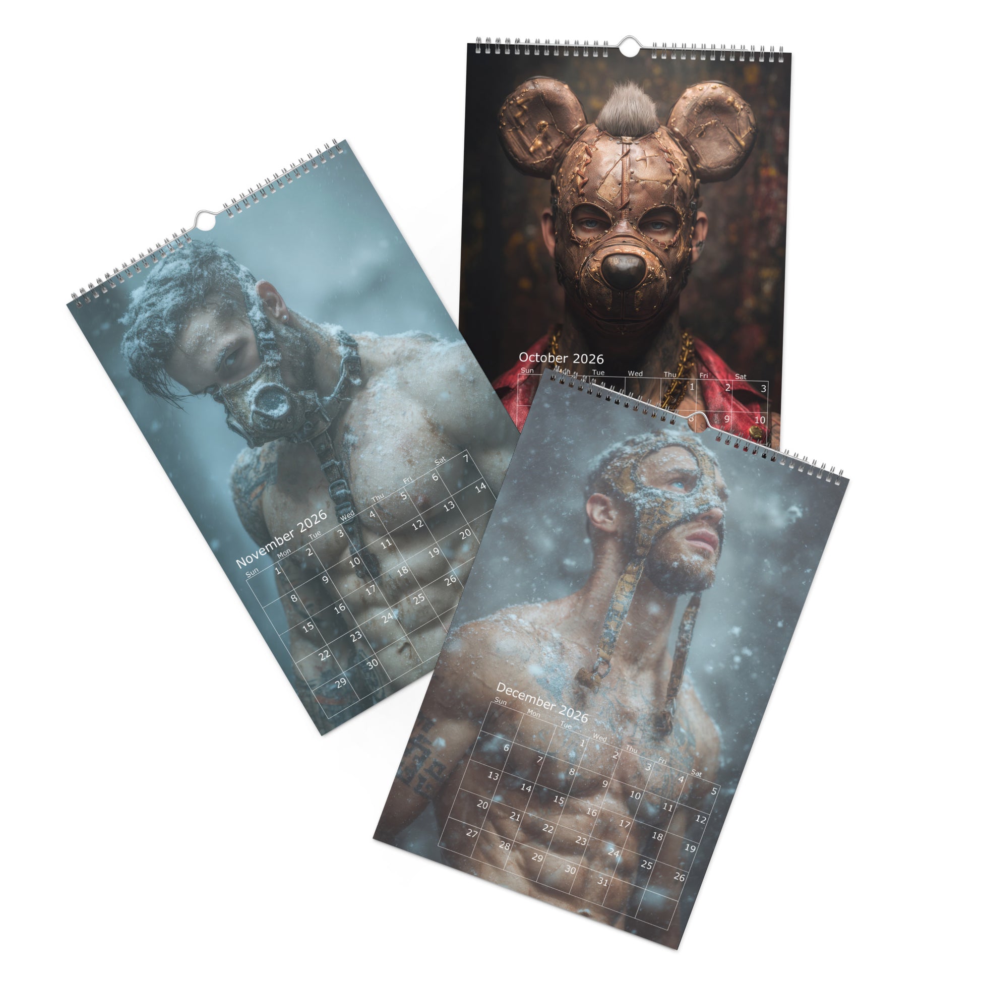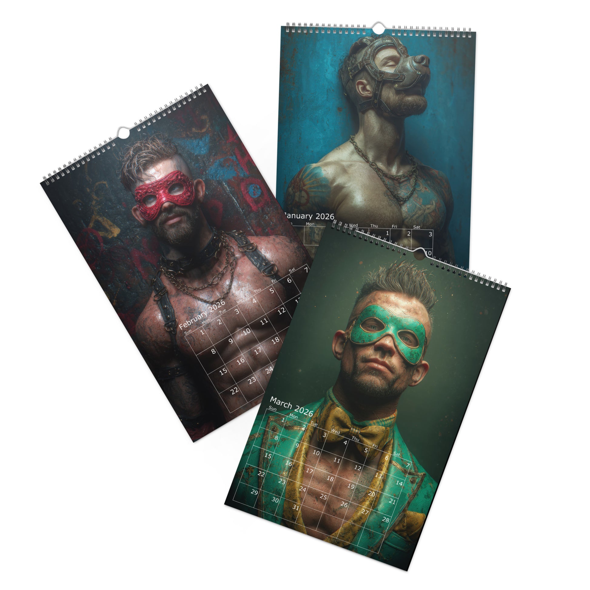 Step into the shadows of desire with Masked Desires 2026, a provocative calendar featuring twelve months of sculpted, mysterious men wearing an array of daring masks—from leather pup to masquerade and fetish fantasy. Each page teases the line between hidden identity and raw allure, leaving just enough uncovered to stir the imagination. Whether you're into roll playing or decadent drama, this calendar delivers a year full of masked seduction and irresistible masculinity.