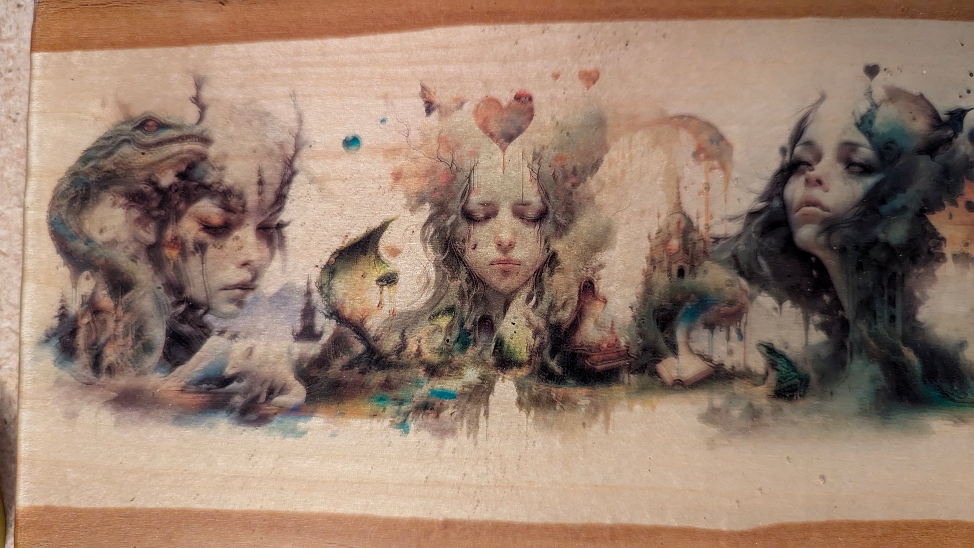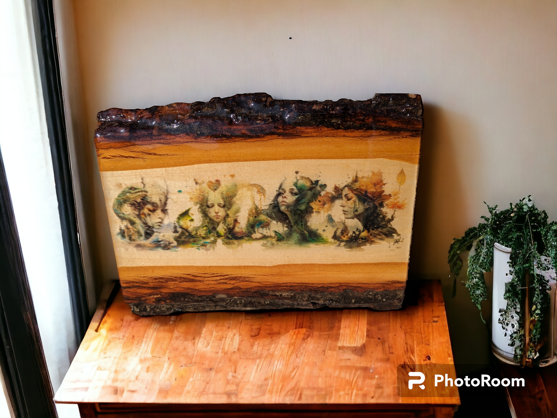 Experience the changing of the seasons with "The Seasons" digital artwork on wood. This piece is sealed with several layers of resin for long-lasting beauty. Winter, Spring, Summer, and Fall queens come to life in this unique and captivating art. Enhance your home with the beauty of nature in every season.